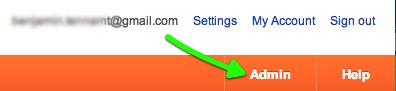 After logging in to your analytics account, click the “Admin” link in the upper right corner.